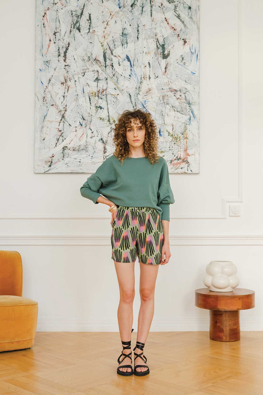 An warmen Tagen trägst Du ihn sommerlich mit unserer Shorts SHORTI im Dash Print. Die strukturierte Oberfläche des Waffelpiqués trifft auf das lebendige Muster – ein Look, der nach Sonne, Stadtbummel und Eis in der Hand schreit.